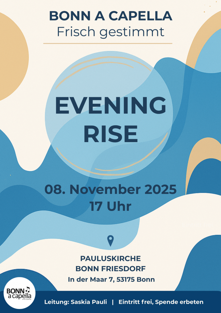 Am Samstag, den 8. November 2025 um 17 Uhr lädt das Ensemble in die Pauluskirche in Bonn-Friesdorf ein – mit einem neuen Programm, neuem Klang und einer neuen Chorleiterin. Denn seit Anfang des Jahres hat Saskia Pauli die musikalische Leitung des Chors übernommen und bringt frischen Wind in die traditionsreiche A-cappella-Formation.